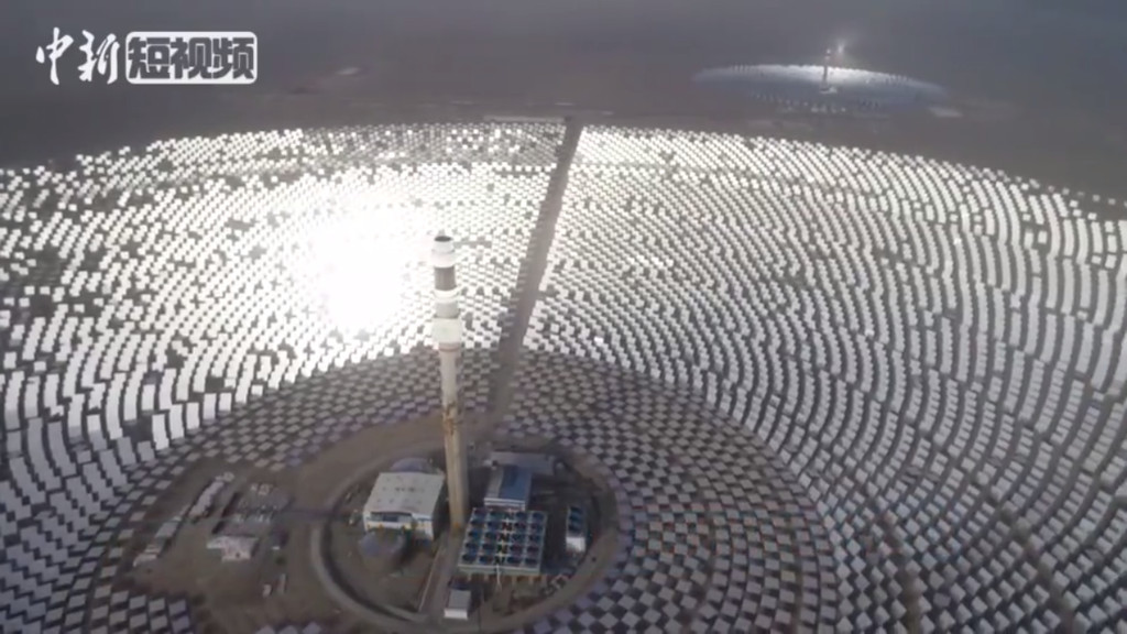 ▲敦煌100兆瓦熔鹽塔式光熱發電站。(圖/翻攝自《中新社》)