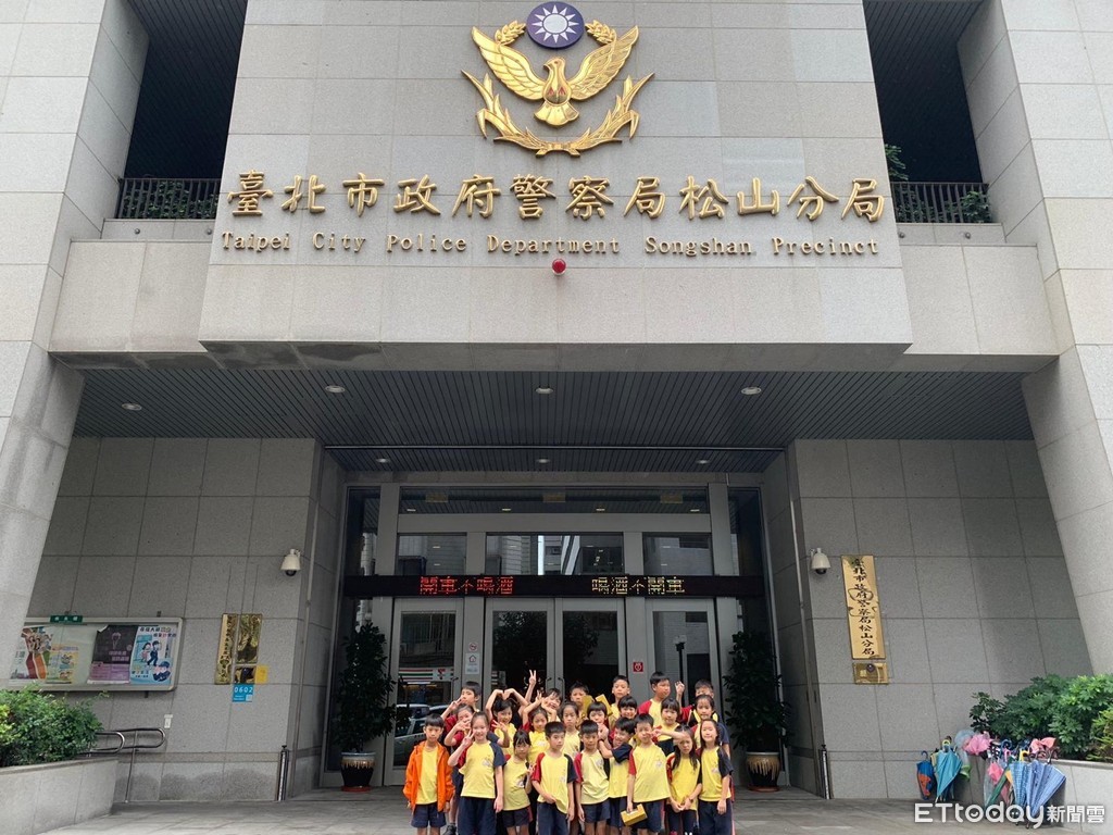 ▲學童參訪松山警分局,體驗當小小「波麗士」。(圖/記者孫于珊翻攝)