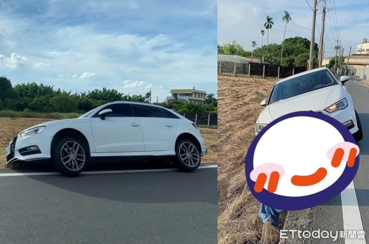 「畢竟這種車模照不是天天都有。」一名女網友在臉書「爆廢公社二館」發文,日前她在路上開車到一半時,眼前突然出現一位三寶阿桑害她嚇到犁田,白車衝出路面,一半車身還留在柏油路上,另一半則是掉入田裡。