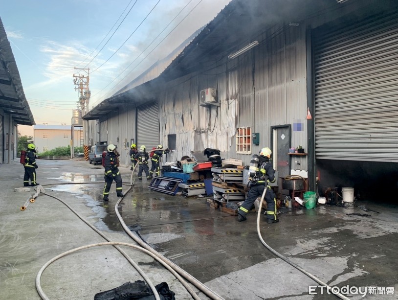 ▲台中大雅鐵皮工廠清晨發生火災,所幸無造成人員傷亡。(圖/記者陳玉翻攝,下同)
