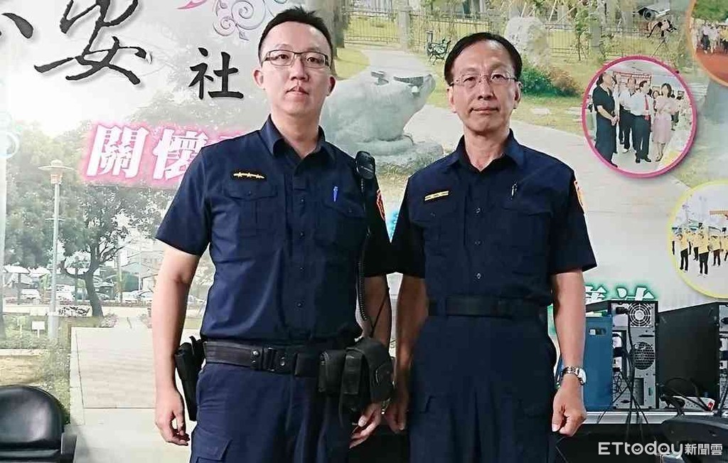 ▲台南市警五分局開元派出所所長莊文輝率員,及時阻止被害女子受騙匯款。(圖/記者林悅翻攝)