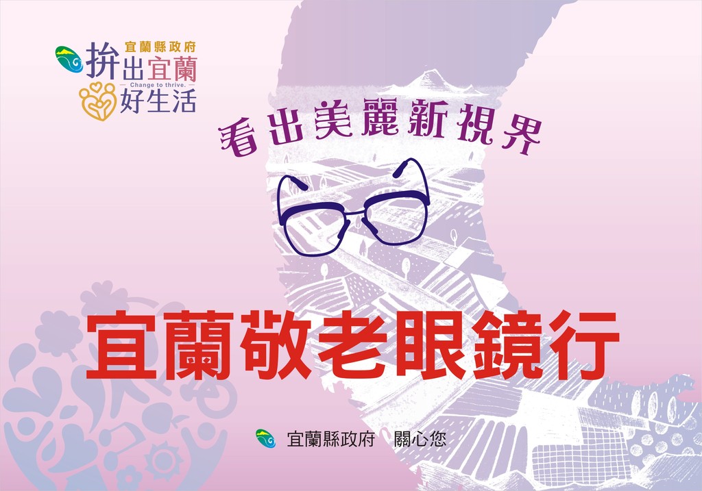 宜蘭縣政府為守護長輩視力健康,7月1日起,年滿65歲以上縣民,以電話預約,再攜帶身分證至縣內任何一家張貼有「敬老眼鏡行」標章的合作眼鏡行,即可接受專業驗光人員檢查服務,並獲贈1付免費老花眼鏡(於完成配鏡後1個月內取件,每人限領1次)。