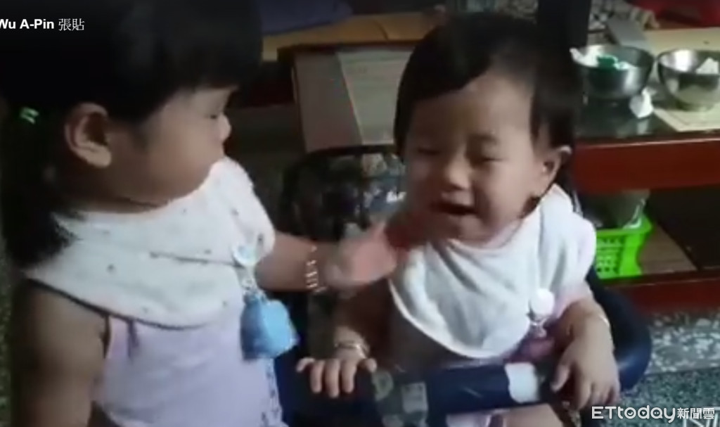 ▲ 2歲小姐姐討抱抱被拒絕,突然狠甩妹妹巴掌 。(圖/網友Wu A-Pin授權提供)