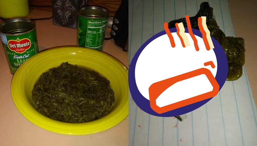 綜合外媒報導,里昂(Cherie Lyons)透露,當天她打開菠菜罐頭要煮晚餐,一開始把菠菜倒入碗內時還沒有察覺,直到要微波的時候才發現碗內似乎有硬物,她用手指撥開,卻發現一隻完整的鳥屍體。