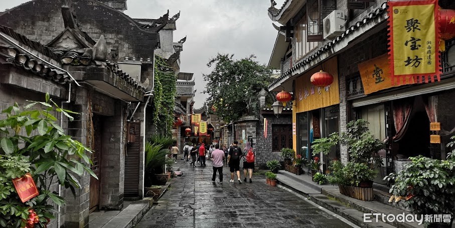 ▲乾州古城的青石板街道。(圖/記者王致凱攝)