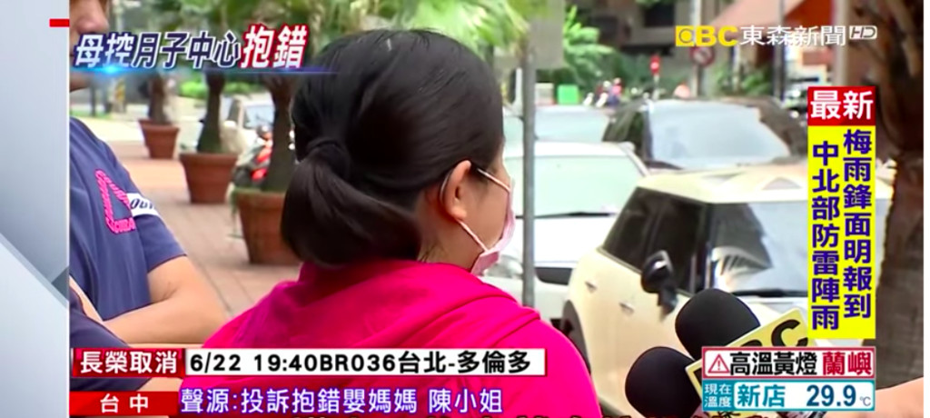 該產後中心陳姓負責人也表示,「該案是護理人員的個人疏失,是第一次發生這樣的狀況,事後也已經有跟陳姓母親道歉。」