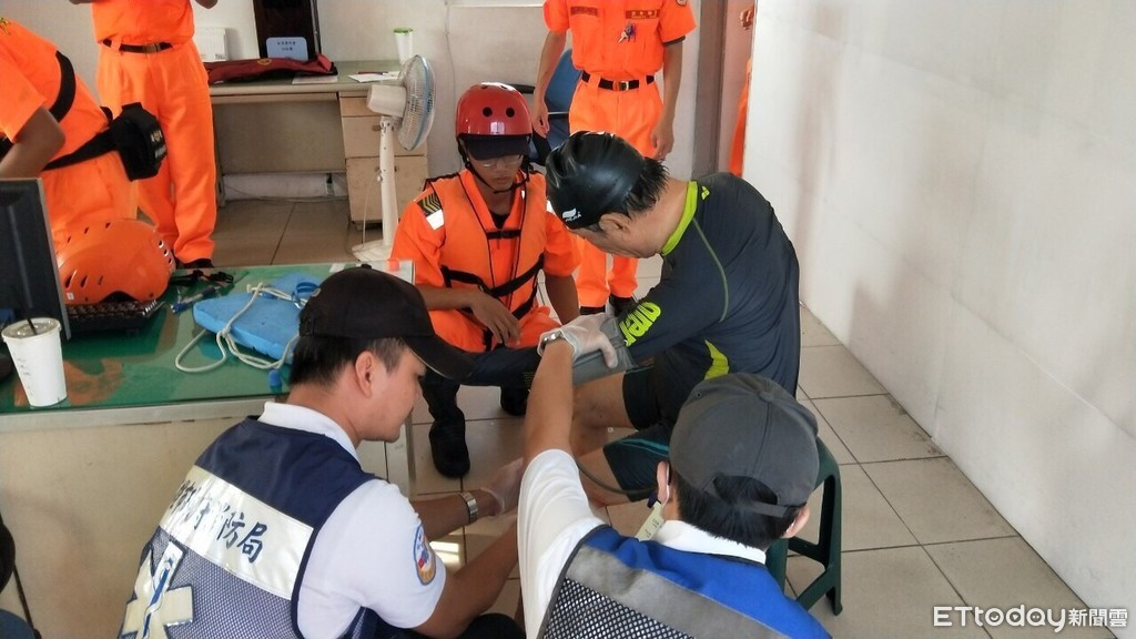 將他救上岸後發現他腿部輕微擦傷,立即進行傷口消毒包紮,到場支援的高雄市梓官消防分隊救護人員評估他男意識清楚,無生命危險,他向救援人員道謝後,隨後由友人陪同離開。