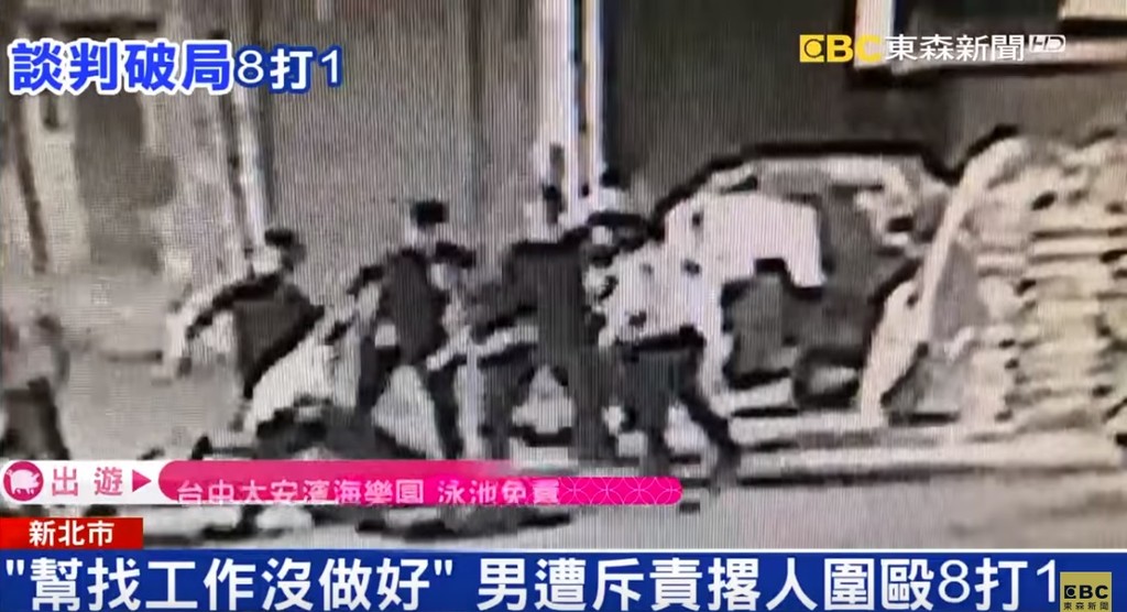 ▲8名惡煞圍起游男就是一陣痛打。(圖/東森新聞)