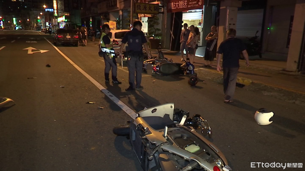 電動車騎士和後座乘客當場倒地,被撞倒的5部機車東倒西歪,現場慘不忍睹,白色轎車車主聽到巨大撞擊聲、趕緊下樓查看並報警,根據了解,電動車騎士沒有駕照,這起車禍也造成騎士、乘客和被撞的路人3人輕傷,幸好都沒有生命危險。