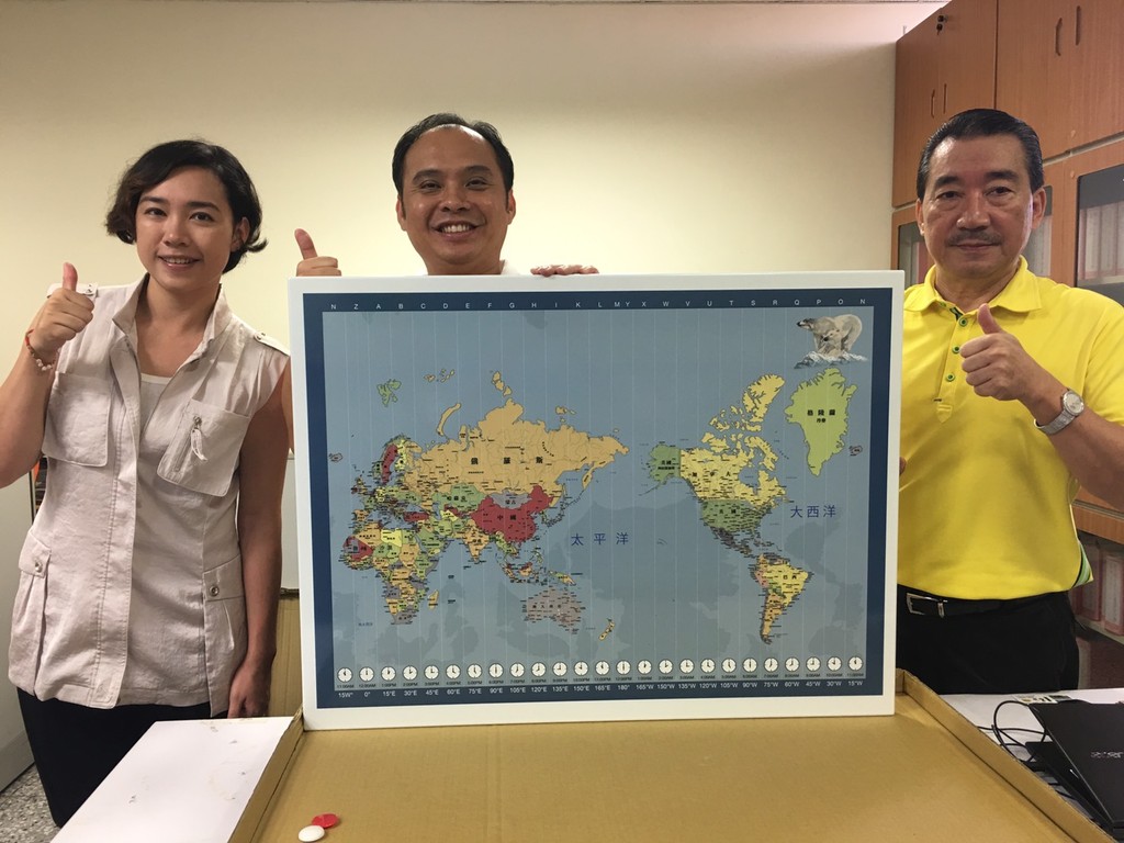 「良好的教學用具,將大幅提升教育水準與效益!」東海大學附屬高級中學校友周以姍捐贈一幅「磁吸式琺瑯世界地圖」,以回饋母校多年來用心的栽培,由人事主任黃浩業代表接受,黃肯定校友回饋母校與關心學弟妹學習的成效,將會掛在醒目處供學生學習。