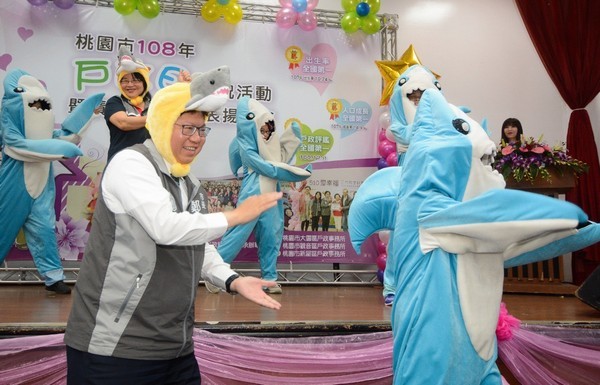 ▲鄭文燦與民政局長湯蕙禎,與戶政人員同樂。(圖/市政府提供)