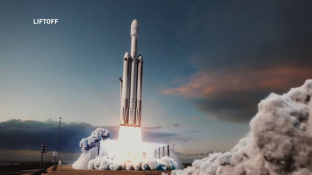 ▲福衛七號將在美國佛羅里達州梅里特島,搭載太空探索科技公司獵鷹重型火箭升空,圖為發射模擬畫面。(圖/翻攝「SpaceX」YouTube)