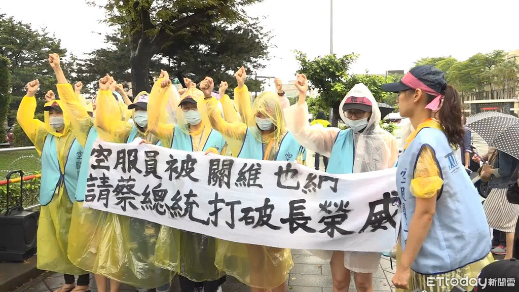 ▲長榮空服總統府前陳情。(圖/記者徐斌慎攝)