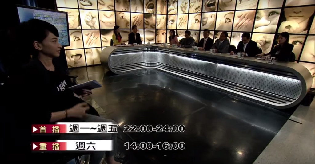 ▲電視政論節目收棚時坐在畫面正中央的周玉蔻正在與其他來賓爭辯,畫面剛好拍到左方的女主播翻白眼。(圖/翻攝自Youtube/年代新聞CH50)