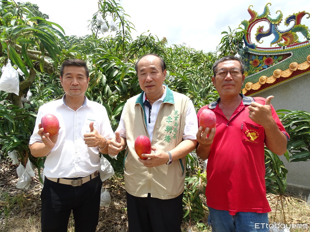 南化區小崙里產銷班長王文瑞,6月24日會同台南市農業局長李朝塘、南化農會總幹事溫進添,先摘下首顆紅通通的神秘「太陽果」,讓國人先睹為快。