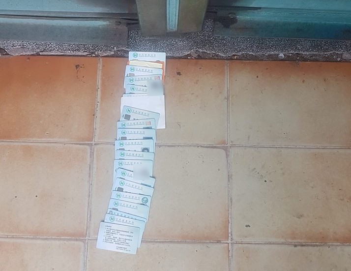 一名男網友在臉書「爆廢公社」中貼出一張照片,只見他所貼出的圖中,地上有一排健保卡排在鐵門前面,乍看之下完全不知道是什麼作用的。原po後來表示,其實這張照片的地點位在一間皮膚科診所前,這些健保卡都是患者用來排隊的工具,笑說自己也是第一次看到。