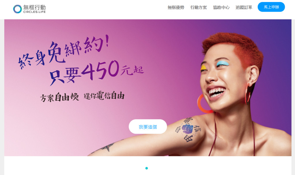 ▲無框行動推出了一個月450元的資費方案,有業者認為這樣的月租費在台灣沒有競爭力。(圖/翻攝自Circles.Life官網)