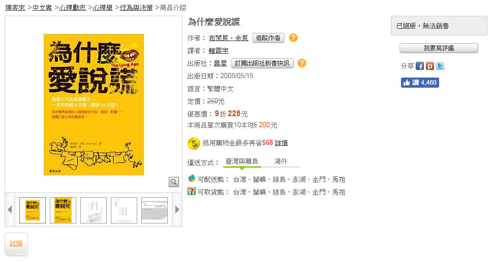事情曝光後,立刻有許多網友上網搜尋這本書。不過,博客來在FB上表示,「對不起,它真的已經絕版!!」但仍有其它「說謊」系列的書籍可以選購,包括:《政治人物可以說謊嗎?》、《為什麼他說謊,卻毫無罪惡感》、《說謊之徒》、《人人都是說謊家》。
