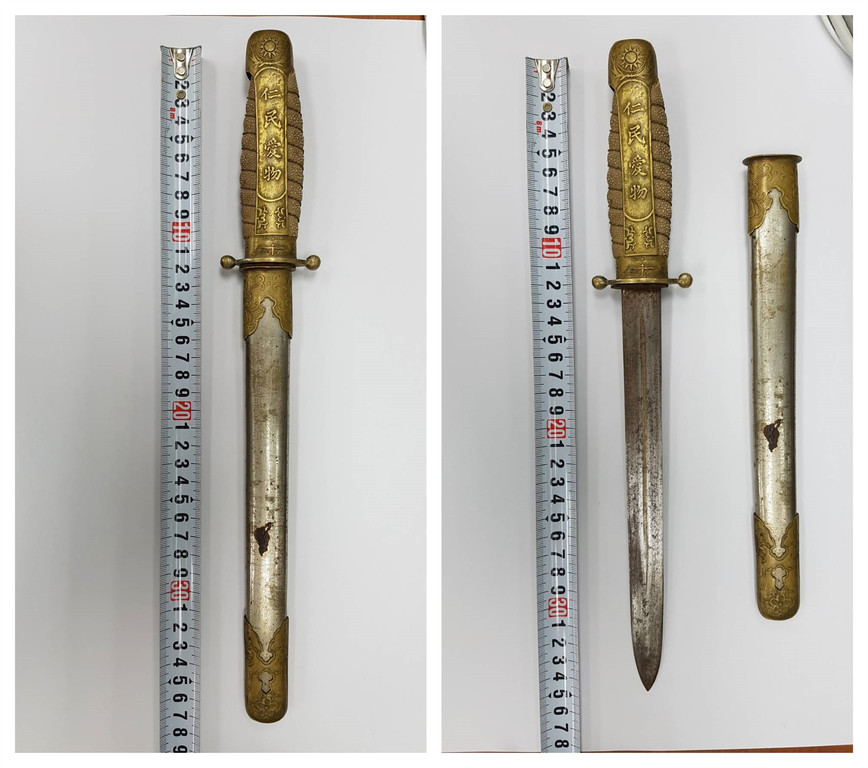 法院法警發現熟識的寶山鄉調解委員溫男身上竟帶了一把刀子,打開一看,原來是黃埔軍校的創校之刀,刀柄上還刻有「仁民愛物」四字的「中正劍」,這把「中正劍」刀刃已開封,雖然年代久遠,導致劍身上有鏽蝕,但仍相當銳利。