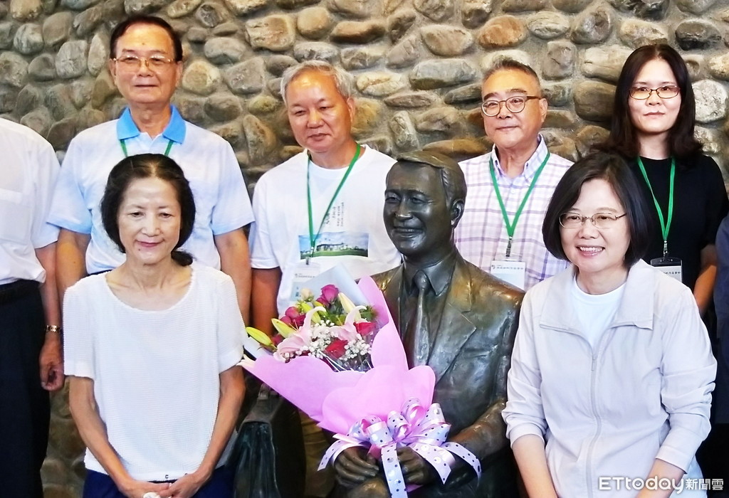 ▲陳定南遺孀張昭義(左前1)、陳定南基金會董事長林光義(左後1)轉支持小英連任。(圖/游芳男攝)