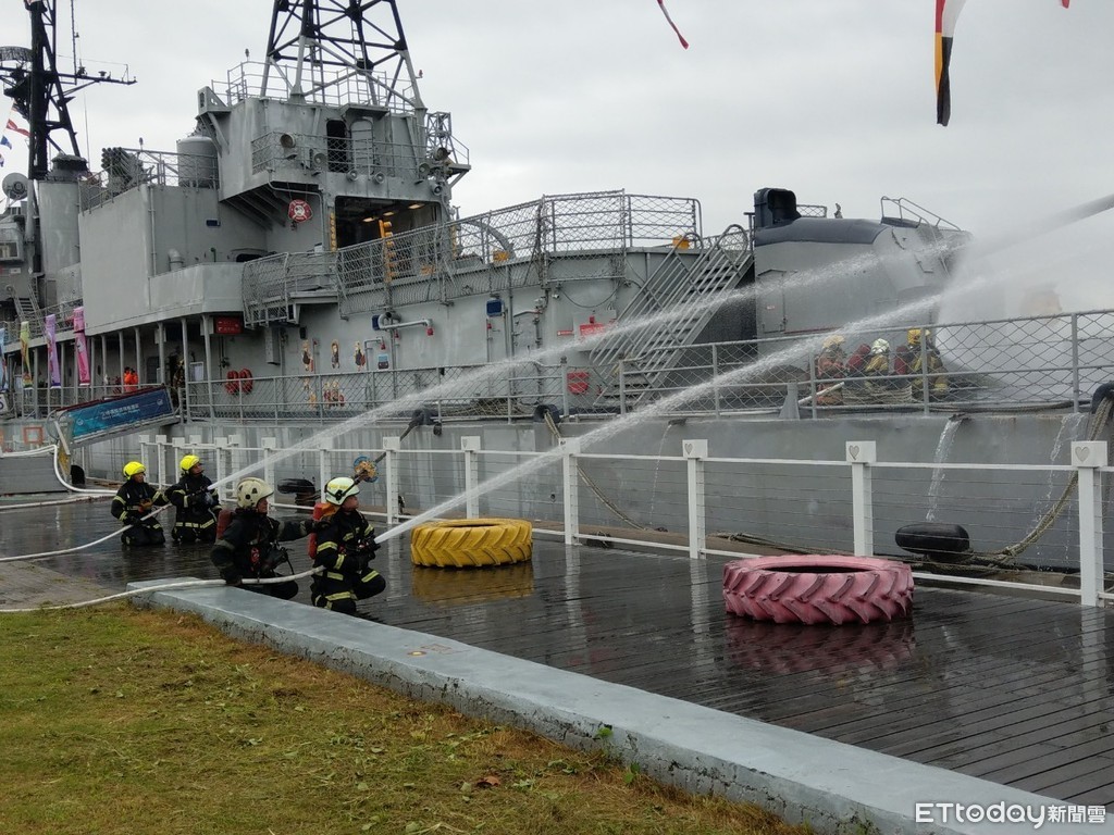 ▲台南市消防局第六大隊,在安平定情碼頭德陽艦園區,辦理搶救船舶火警及水上救援重點研討及實地演練。(圖/記者林悅翻攝,下同)