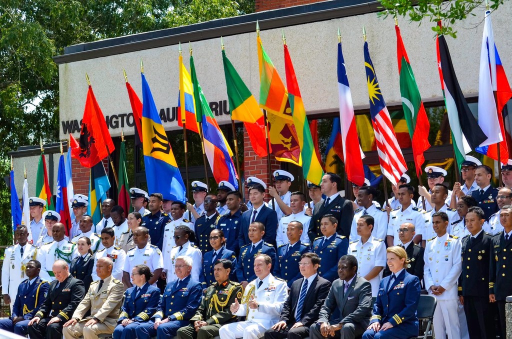 ▲海巡署派員前往美國參加海巡國際海事官員班,我國國旗與其他28國一同飛揚。(圖/翻攝臉書《海巡署長室 Coast Guard》,下同)