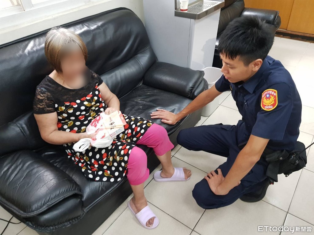 ▲園市湯姓婦人在便當店前聞香逗留被店家報警協尋,員警帶回派出所安置。(圖/記者沈繼昌翻攝)