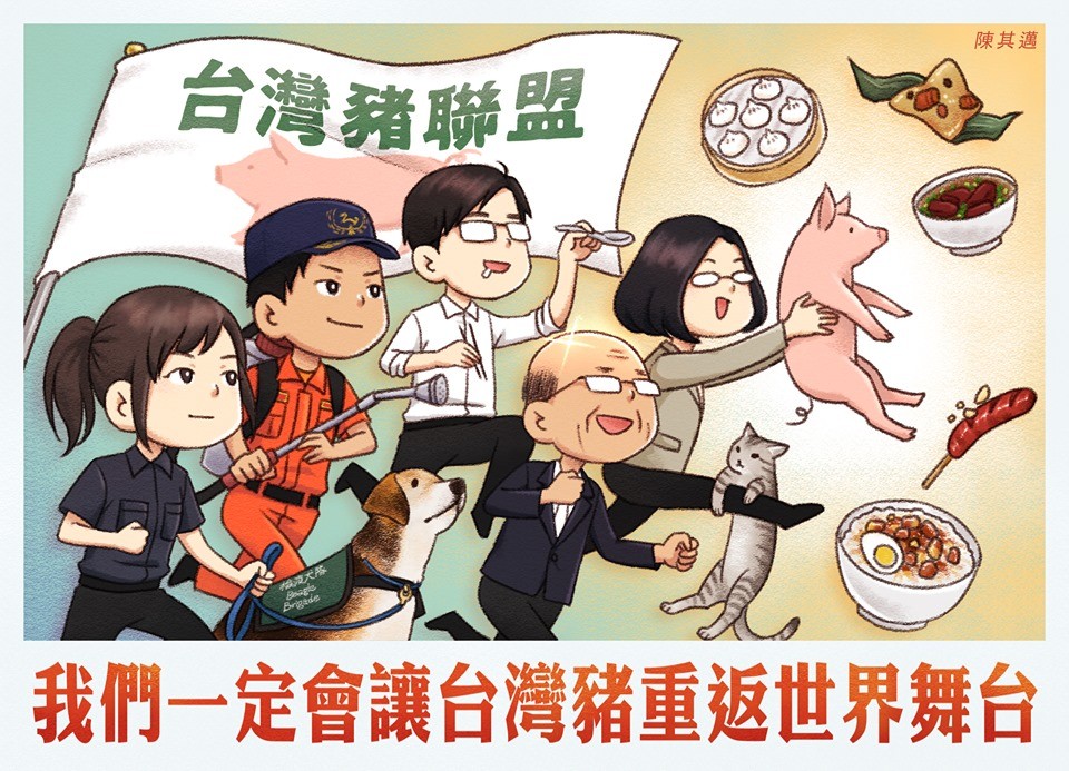 「就是今天!台灣豬的關鍵時刻!」陳其邁30日上午在臉書上表示,台灣豬在感染口蹄疫前,1996年的出口產值可達到600億台幣,是台灣畜牧業外銷的主力;然而因為口蹄疫,讓這位主力選手在傷兵名單待了23年,無法上場為台爭光。