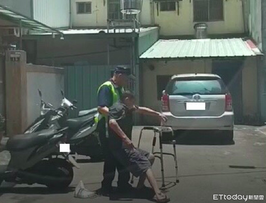 警得知高男住在附近,立即幫忙提便當、一手攙扶高男左手臂協助返家,警也叮嚀「慢慢走、不用急」,高男因在烈日下曝曬許久,行走時更一度無力,警也立即從後背扶住,而高男家屬也正好返家,眾人一起將高男帶到家中休息。高男家屬也淚謝警察幫忙,讓這個社會更溫暖。