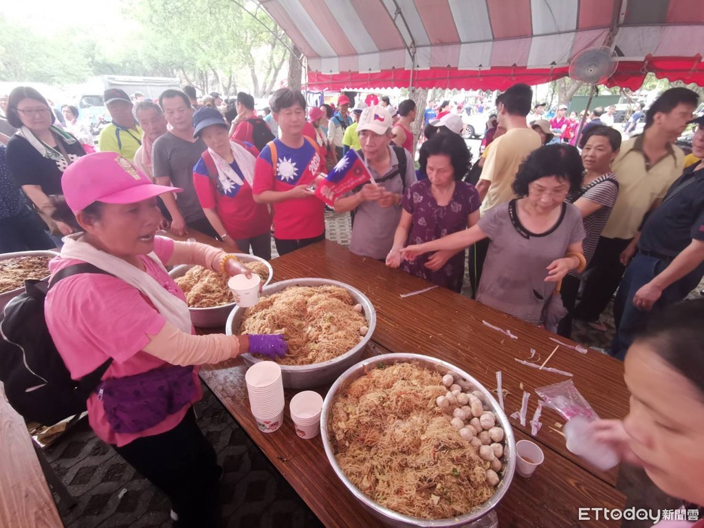 ▲韓國瑜鐵粉運來5000份米粉,到新竹造勢現場分送給民眾免費吃 。(圖/記者王亞志攝)
