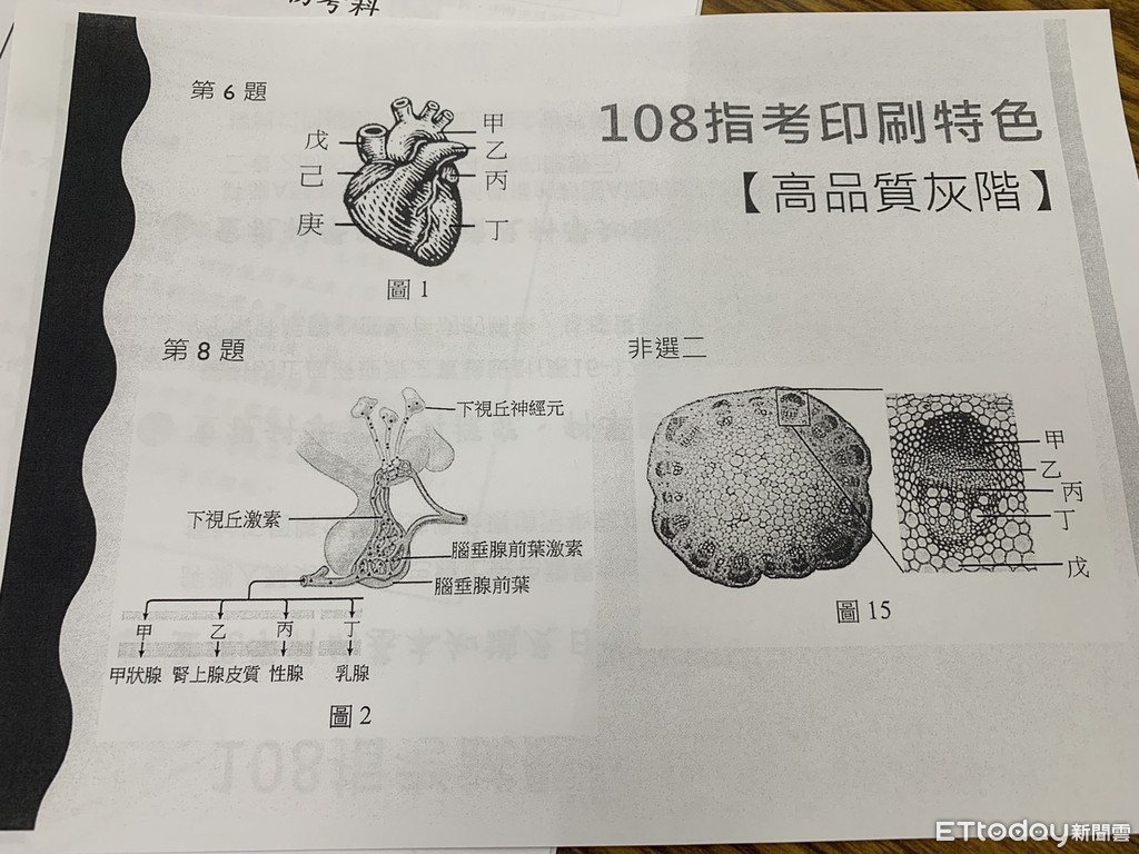 ▲為了讓圖表資訊更清晰,大考中心表示107年起試卷採用「高品質灰階印刷」。(圖/記者林育綾攝/大考中心提供)