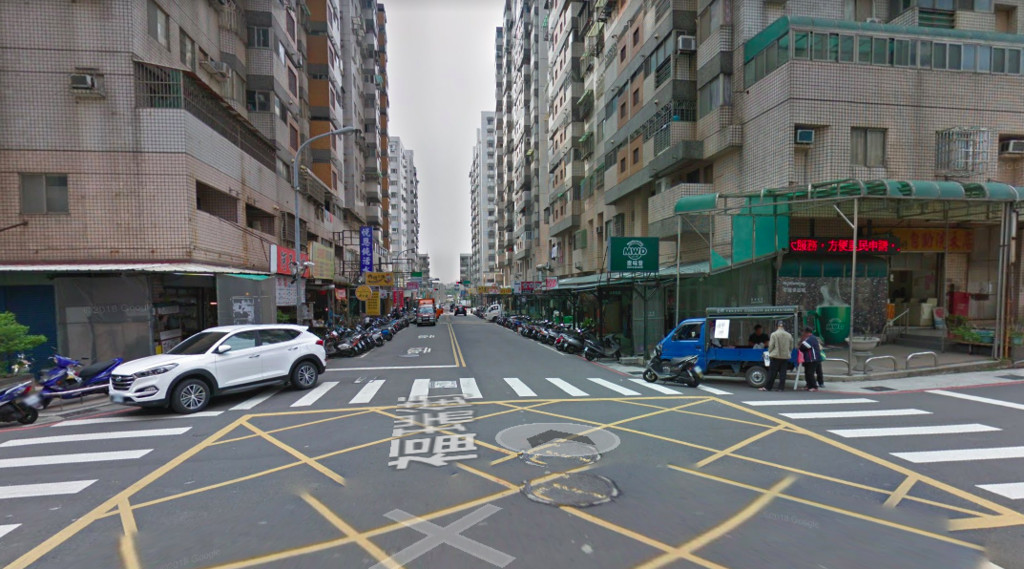 ▲黃女疑因為未減速碰撞他車,車輛爆胎後左偏再撞路旁18輛機車。(圖/翻攝自Google map)