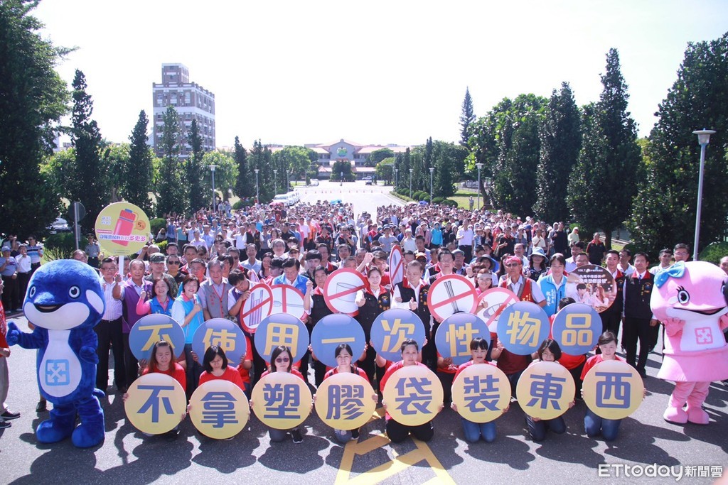 ▲▼花蓮縣政府舉行七月份升旗典禮,縣長徐榛蔚帶領13鄉鎮市長以及軍方代表,宣誓落實「限塑」政策。(圖/花蓮縣政府堤供,下同)
