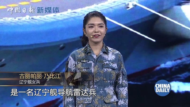 《中國日報》報導,古麗帕麗‧乃比江是一名退役的遼寧艦導航雷達女兵,2013年10月她成功加入艦上的大家庭。古麗帕麗指出,自己在學習3個月的基礎知識,接著又在班長旁邊跟班1個月後,終於有自己可以獨立報告目標的機會。