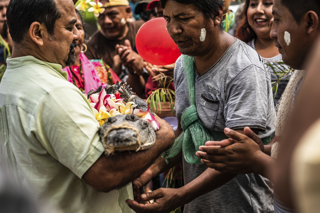 位在墨西哥南部的聖佩德羅瓦梅盧拉(San Pedro Huamelula),6月30日舉行娶「鱷魚」為妻的傳統儀式,藉此向海洋祈求豐富的漁獲量。據當地人相傳鱷魚是「公主」的化身,可以為他們帶來好運,因此,自1789年開始,鎮長每一年都要娶一隻鱷魚為妻。