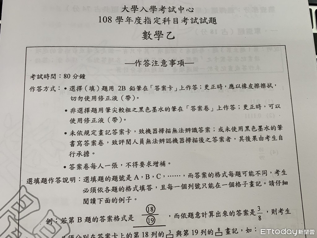 ▲108學年度大學指考數學乙試題難度中等,重觀念、無刁鑽計算,大考中心呼籲社會組考生不要輕易放棄數學。(圖/記者林育綾攝/大考中心提供)