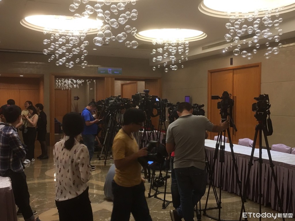 ▲長榮航空勞資雙方二度閉門協商,中午一度休息後遲遲未開會,大批媒體苦候會議室前。(圖/記者沈繼昌攝)