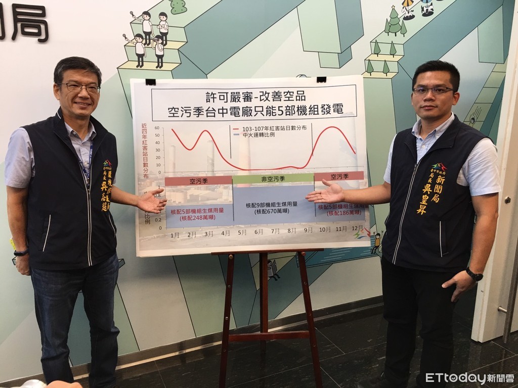 吳說,台電既然有新增機組,就該將汙染較嚴重的中火燃煤發電優先減量、減少汙染,市府未來會在空汙季嚴加限煤,要求減至5部機組發電,大幅減緩中南部地區空氣品質負荷的壓力,如果台電沒有依要求減少生煤使用量,最壞打算不排除不再核准中火使用執照。