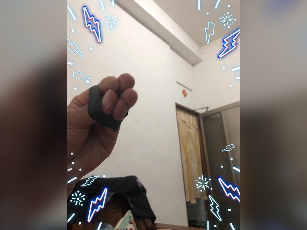 ▲網友把手指頭綑綁在一起,向老婆暗示「手頭緊」。(圖/翻攝臉書爆廢公社公開版)