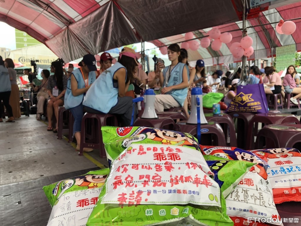 ▲長榮空服員罷工第14天,會員在「乖乖」空白處寫下對公司的話 。(圖/記者陳以昇攝)