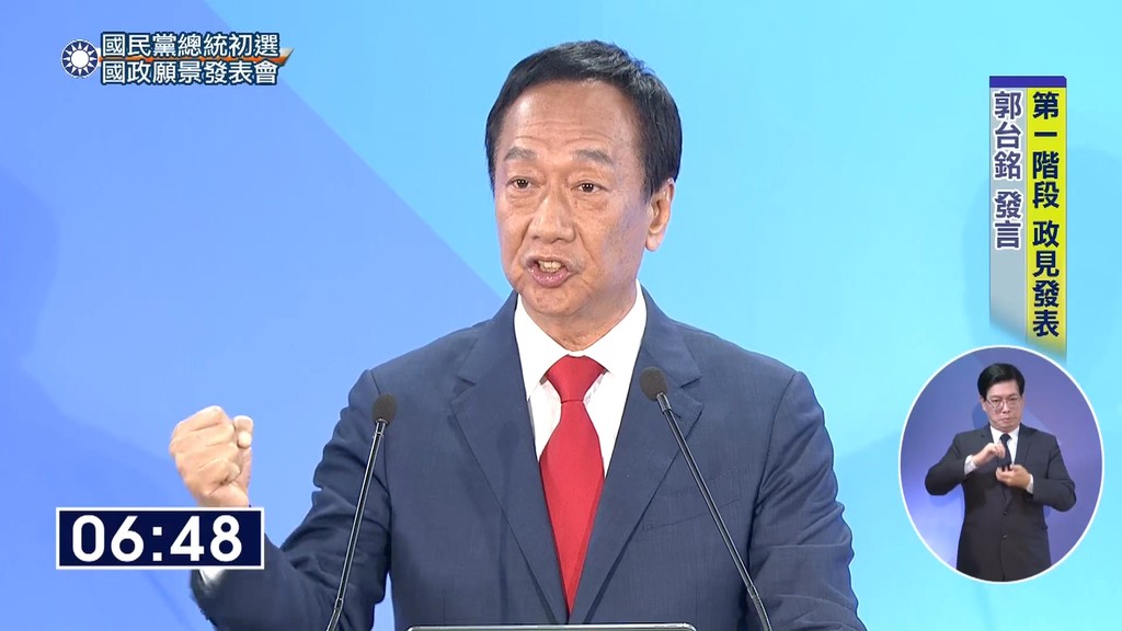 在第一段12分鐘政見闡述時,郭台銘表示,他日前提出國家養孩子的政見遭到其他政治人物、參選人取笑,但他是有著40多年拚經濟、執行的人,本就跟傳統政治人物不一樣,「我跟他們一樣就不用出來選了,所以那些說不能做到的,都是用舊思維、沒有勇氣去創新跟突破」。