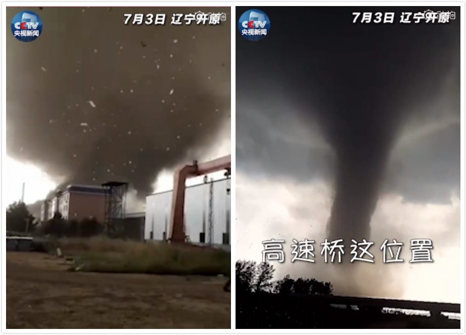 據央視新聞報導,遼寧省開原市3日下午5點15分遭受突發龍捲風襲擊,附近風速達23米/秒(9級)。龍捲風由金溝子鎮形成,經興開街道,開原經濟開發區,向南持續15分鐘後,減弱成低壓。