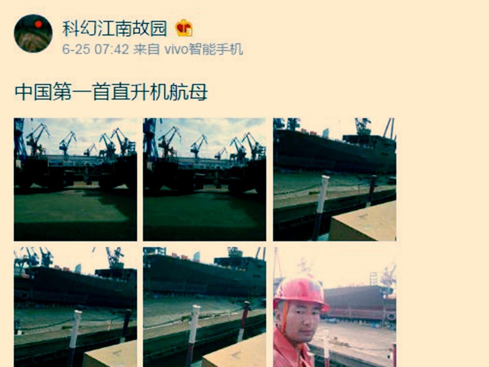 大陸一名網友近日在微博公開6張075型兩棲攻擊艦在建近照,同時配文「中國第一艘直升機航母」引發網路瘋傳。075攻擊艦被外界認為是解放軍未來專門為攻台而生的一大利器,由於陸官方尚未證實該型艦艇的存在,此時網友公開近照恐有洩密嫌疑。
