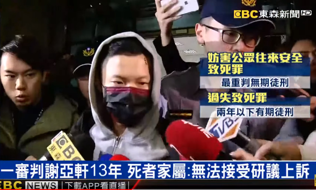台北一名男子謝亞軒及友人黃佑呈2018年10月時在南京東路追車狂飆,但謝亞軒的車卻突然失控撞上一旁的騎樓,導致3人身亡。台北地院審理後,認為謝自首符合減刑要件,依妨害公眾往來致死罪判刑13年,而黃男也被判11年有期徒刑。對此,謝亞軒的父親表示,兒子不是故意的,這判決實在太重。