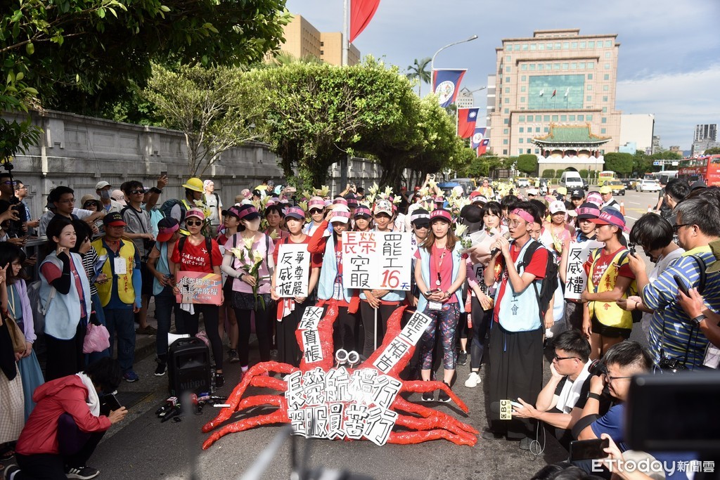 ▲長榮罷工空服員從南崁步行到凱道向蔡總統請命。(圖/記者李毓康攝)