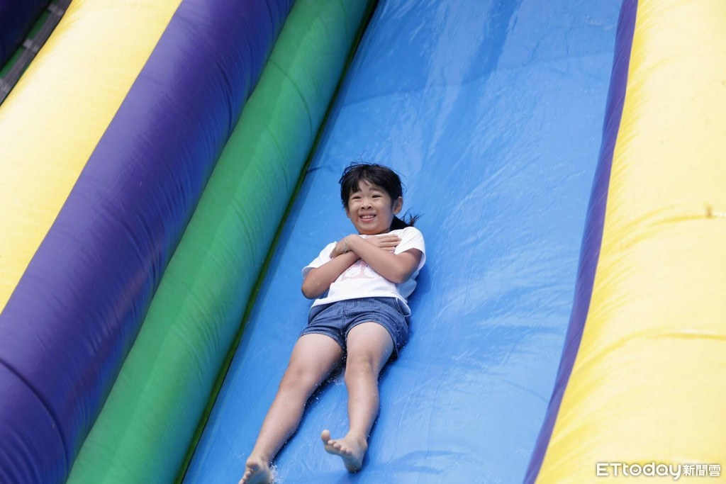 屏東兒童狂歡節活動6日起跑,多元有趣的互動體驗、跳跳屋滑水道以及YOYO家族帶動唱,讓現場小朋友樂開懷。