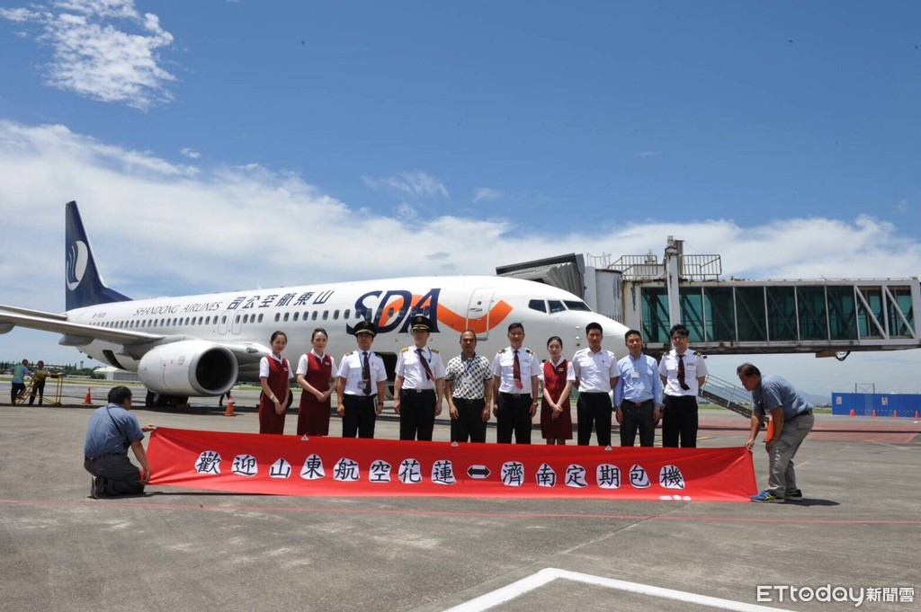 山東航空成功對飛復航,6日上午首班飛機自山東飛抵花蓮,花蓮縣長徐榛蔚率領各局處首長出席迎賓典禮,並與山東航空台灣分公司總經理趙瑜及各界貴賓共同迎接山東航空首航旅客的到來,正式啟動每週六一次的定期包機往返濟南-花蓮兩地。
