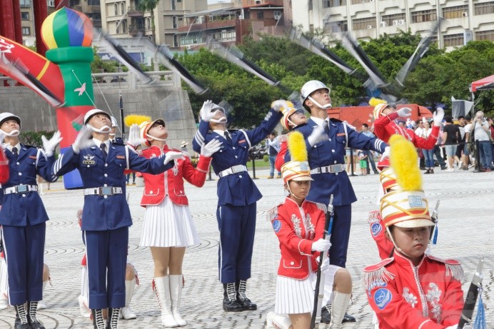 從北、中、南區儀隊競賽脫穎而出的港明高中、新興高中、莊敬高職、臺中女中、光華高工、仁德醫專、臺南女中、恆春工商及智光商工等9所學校依序上場,各校搭配活潑、高亢的多首組曲完成困難的隊形變換與整齊操演,展現年輕學子的活潑創意與活力,不時讓現場圍觀民眾抱以熱烈掌聲。