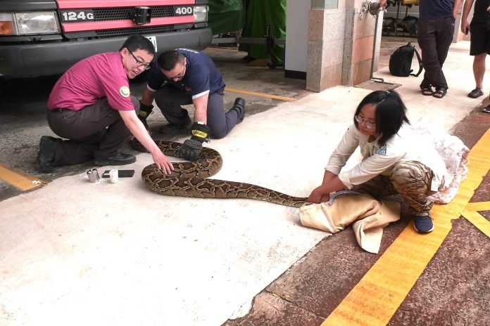 ▲金門緬甸蟒夏天大多在晚上出沒,秋、冬則是白天。(圖/金門縣消防局提供,下同)