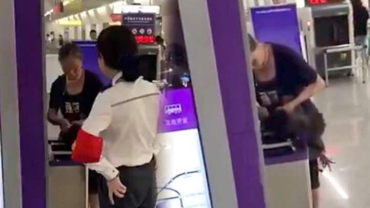 ▲大媽違規攜帶「活雞」進地鐵站。(圖/翻攝自《中國報》)